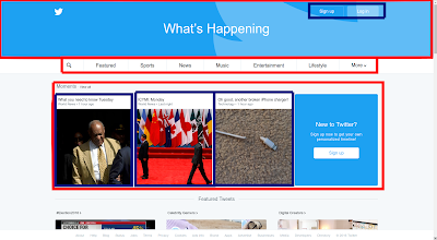 Lets look at another example. We'll go to twitter for this one. If you happen to be already logged on to twitter, I highly suggest visiting it in incognito mode on chrome so you get a chance to see what it looks like before we break it down into boxes.